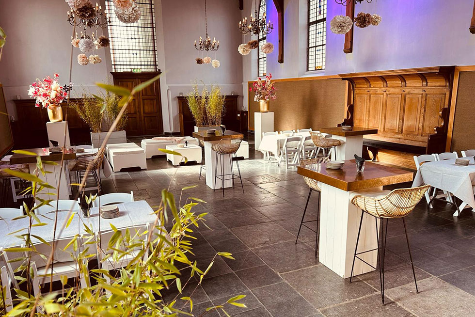 Deze ruimte geeft echt het authentieke karakter van de locatie weer. Je raakt niet uitgekeken, overal word je verrast met eeuwenoude details die het verhaal van deze prachtige locatie vertelt. Het schip verleent zich voor evenementen divers van aard en geeft ruimte voor ongeveer 160 personen.